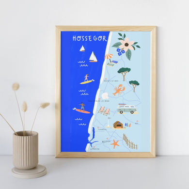Hossegor et la cote landaise - Affiche illustrée 2 - Format A3