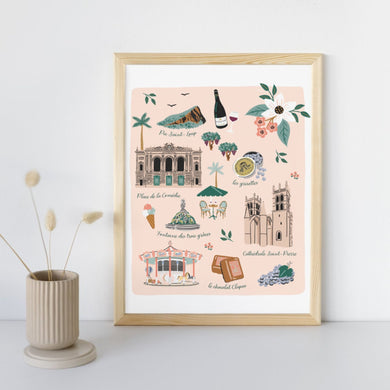 Montpellier - Affiche illustrée 2 - Format A3